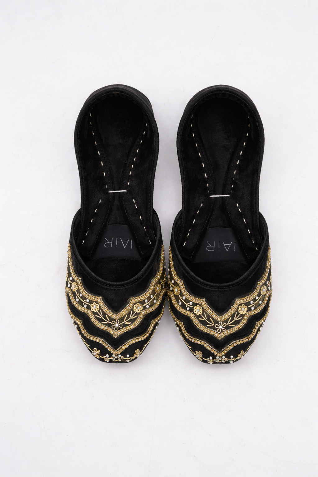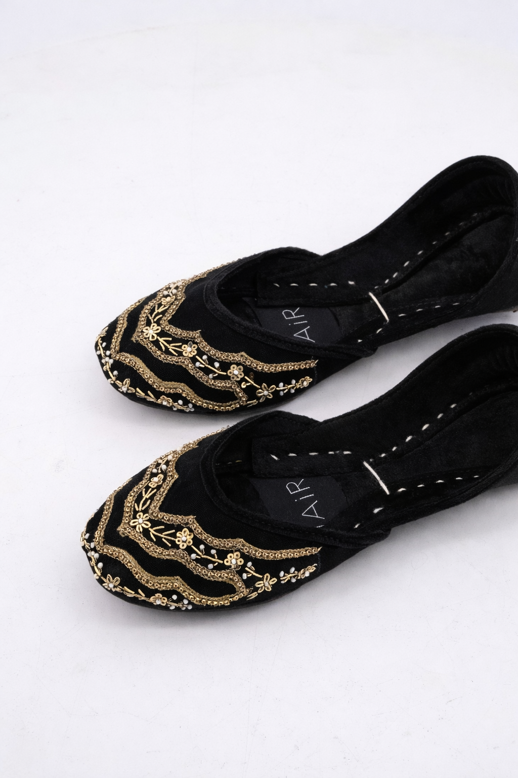 "RENIA" Our black Hand-Embellished Khussa combines plush velvet, airy net, and intricate craftsmanship for a perfect blend of tradition and comfort.